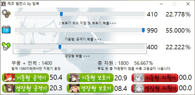 특제조에 900/900/900으로 넣을 시 부품과 전력이 가장 낮은 상태니 자연스럽게 지원기 최대식이 되니까요.