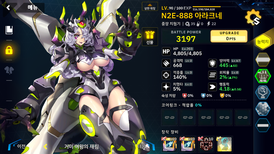 그러다 보니 이번 맵에는 이 스킬 때문에 적 공격력이 낮아져서 골타가 죽어버리는 사태도 발생하기 때문에 그냥 아라크네는 봉인하는게 좋습니다.