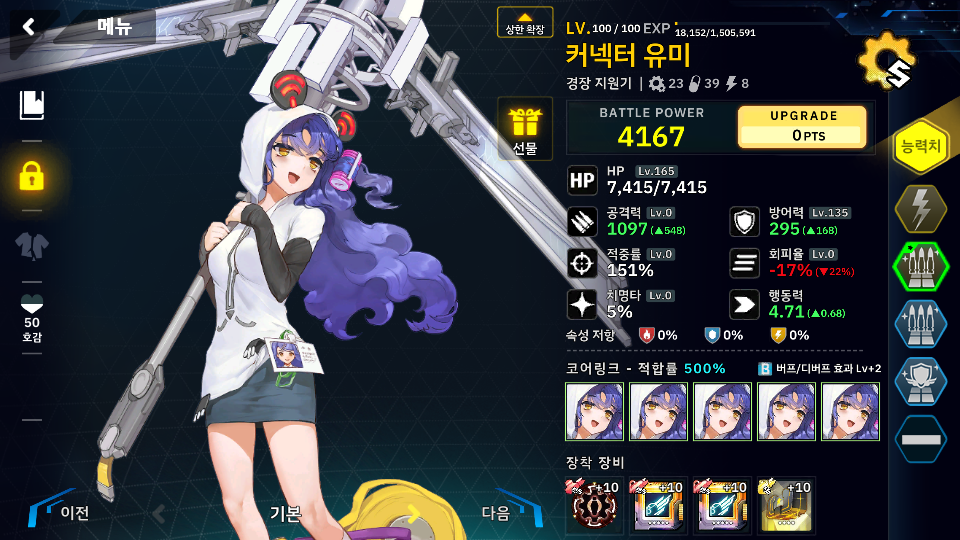 적의 적중이 700이 넘기 때문에 슬래이프니르 처럼 진짜 회피가 다른 캐릭터보다 한단계 더 높은 애들이 아니면 불가능합니다.
