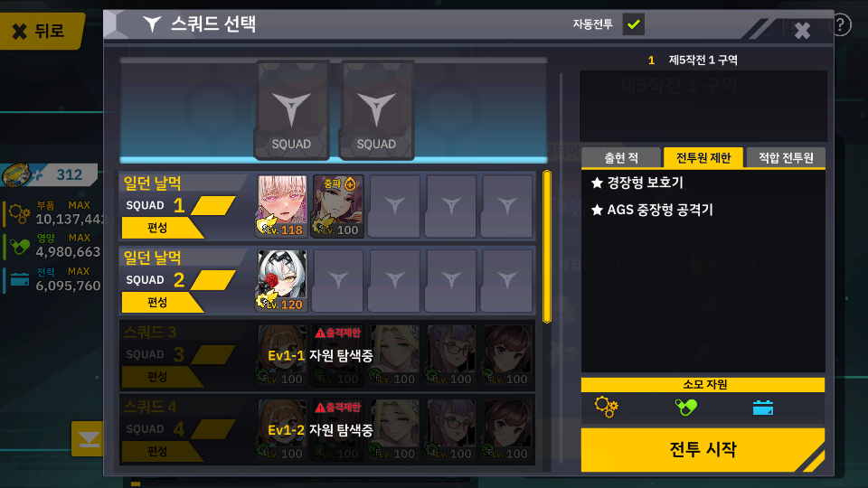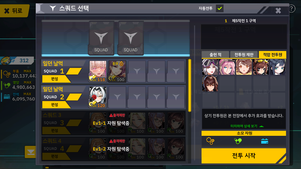 4지역 처럼 이번 역시 전투원 제한 시스템과 적합 시스템 같이 있네요.