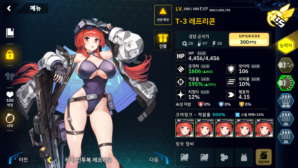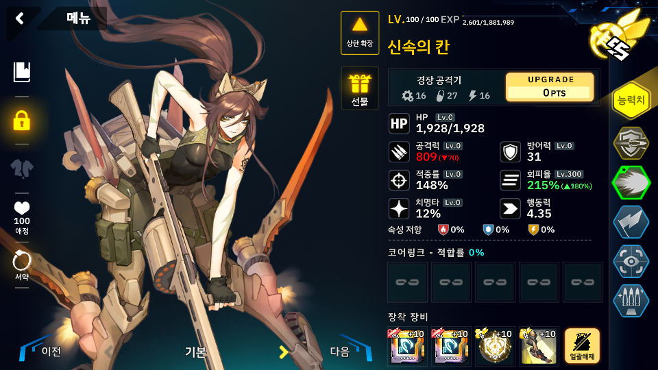 아무튼 1스테이지는 스킬라인과 호드 지원기에 추가 스탯이 붙길래 스틸라인으로 올인할려고 했으나 스틸라인의 대장인 마리가 또 못들어가는 스테이지 라서 회피탱커로 칸을 데려갔는데