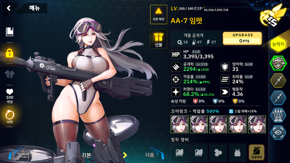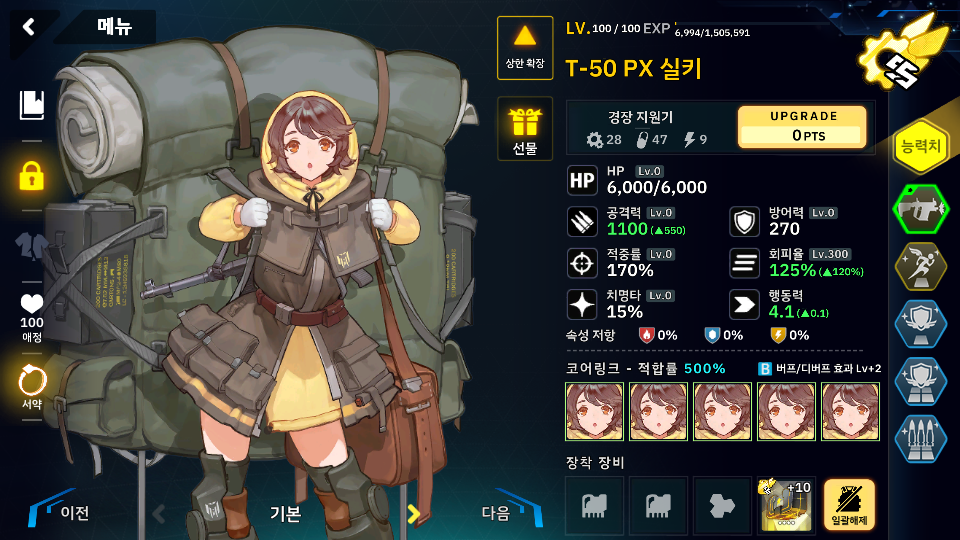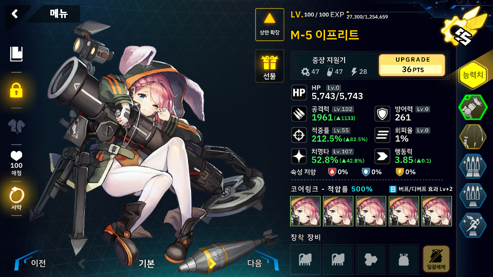 아무튼 1스테이지는 스킬라인과 호드 지원기에 추가 스탯이 붙길래 스틸라인으로 올인할려고 했으나 스틸라인의 대장인 마리가 또 못들어가는 스테이지 라서 회피탱커로 칸을 데려갔는데