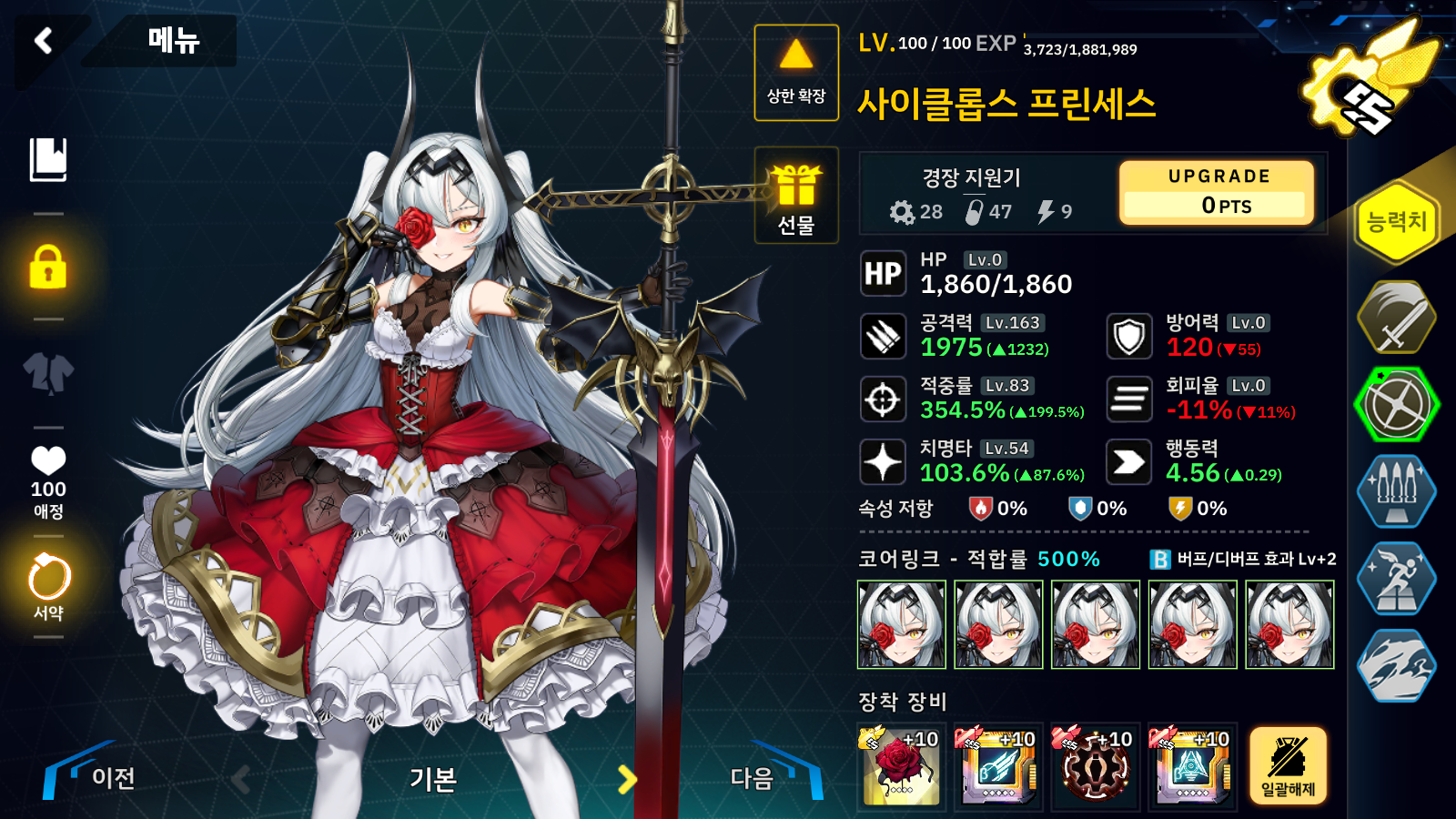 일단 크레이버 오지게 쎄기 때문에바로 1순위 끊어주고 2번째 문제인 디스트로이어의 경우 적중이 생각보다 낮기 때문에 더 적중을 낮출 수 있는 악수맨 제너럴을 빨리 끊어주면 적중을 100정도로 만들 수 있기 때문에 차라리 회피 좀 올려놓고 하면 더 편할 수도 있겠더군요.