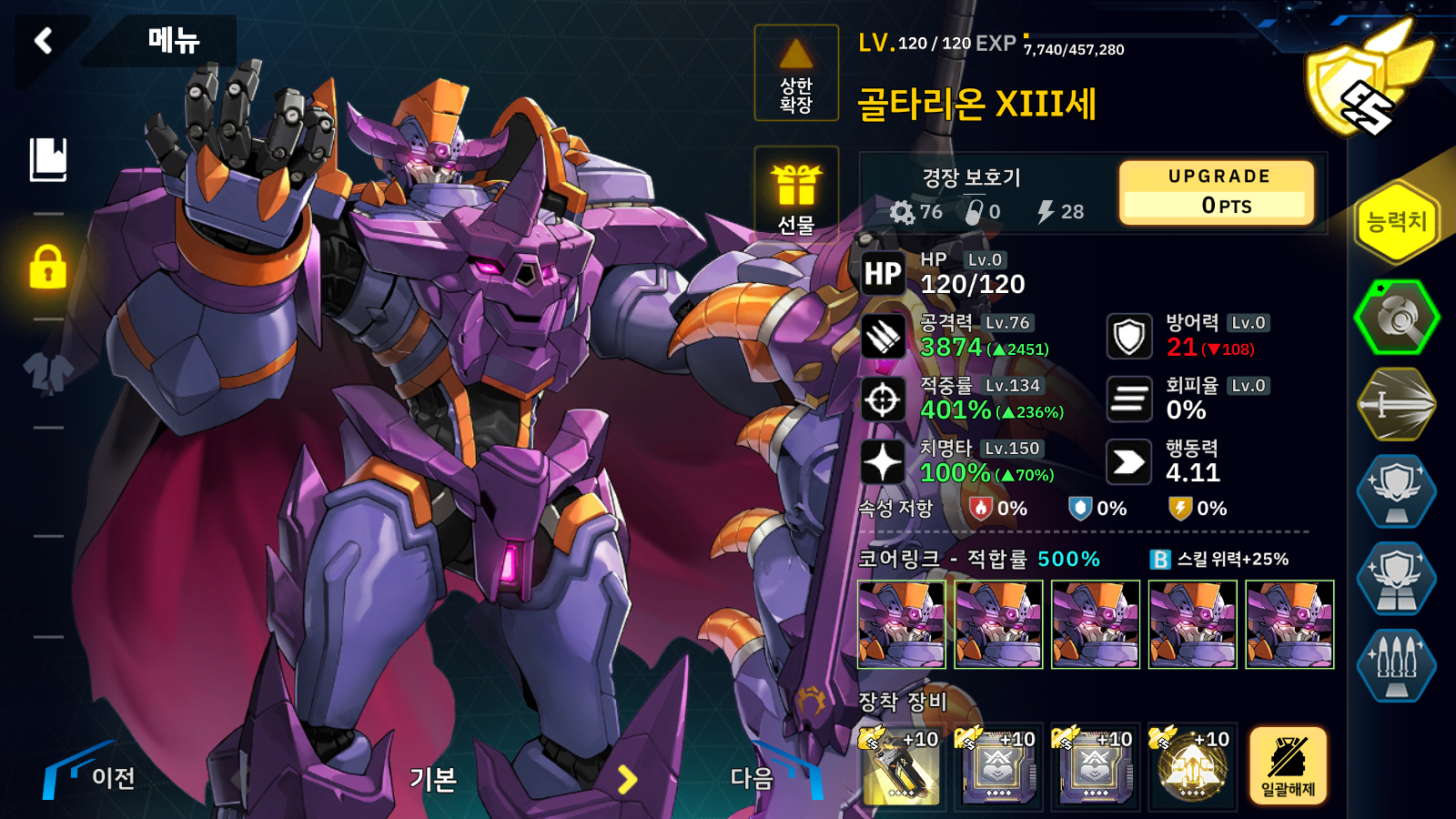 후후후.. 이번 스테이지 시작전 적의 리스트를 보니 골타리온을 죽일 수 있는 적이 없더군요.