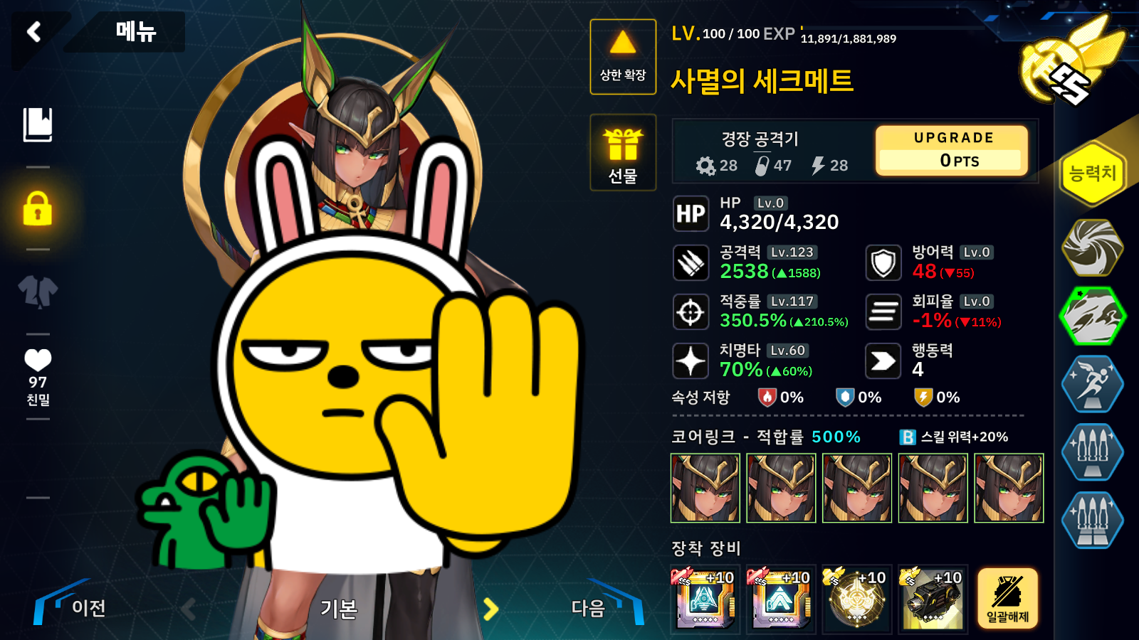 세크멘트가 진짜 데미지가 어마어마하고 하토르, 다크 엘븐도 포인트로 딱딱 때려주면 크게 어렵지 않게 클리어 할겁니다.