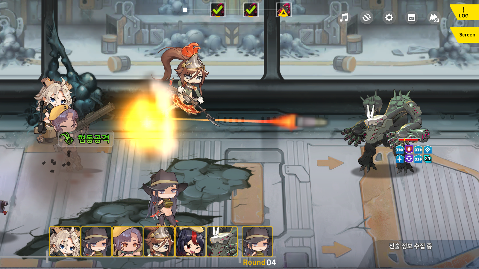 반격이 걸리는 적은 칸으로 공격하고 퀵 카멜이 지원 공격하고 다시 그 공격은 칸이 회피하니 칸으로 반격하는 애들만 저격해주면 간단하게 클리어 합니다.