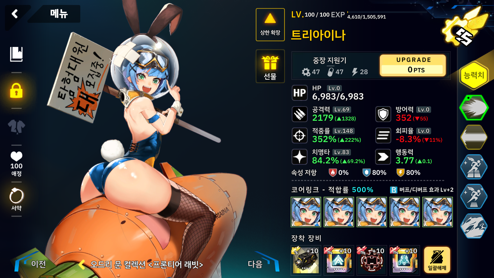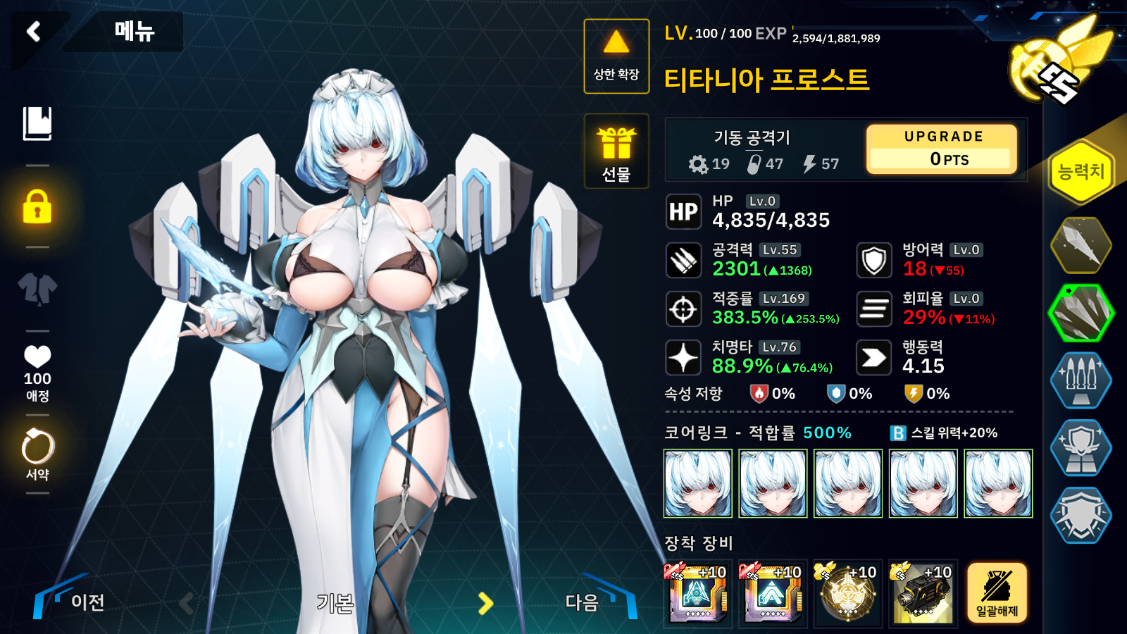 니바를 포함해서 적합 보너스를 받는 친구들로 파티를 구성했더니 니바 자리가 없습니다 -_-;;