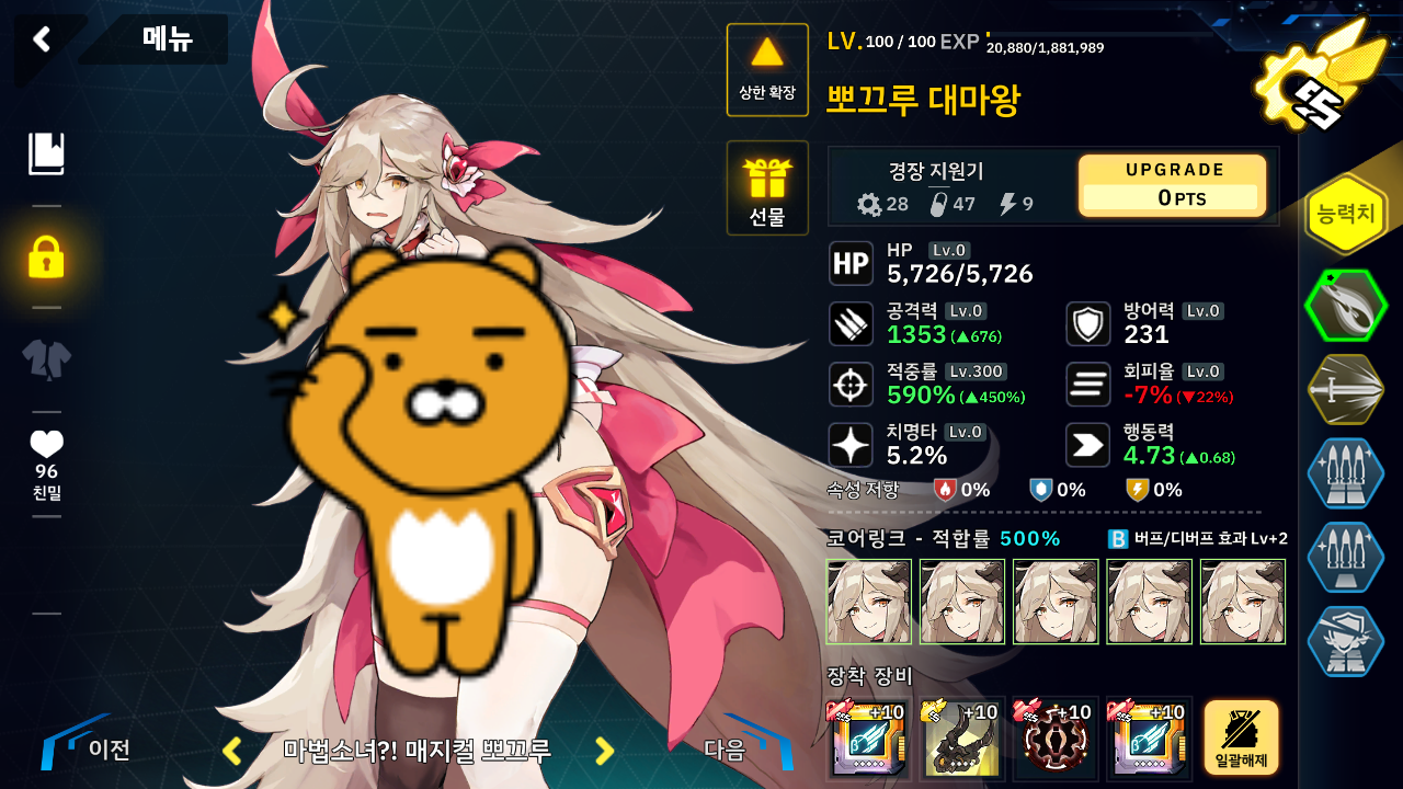 마왕님을 사레나가 공격지원하고 골타리온은 미호가 공격지원하기 때문에 타수가 부족하지 않으며