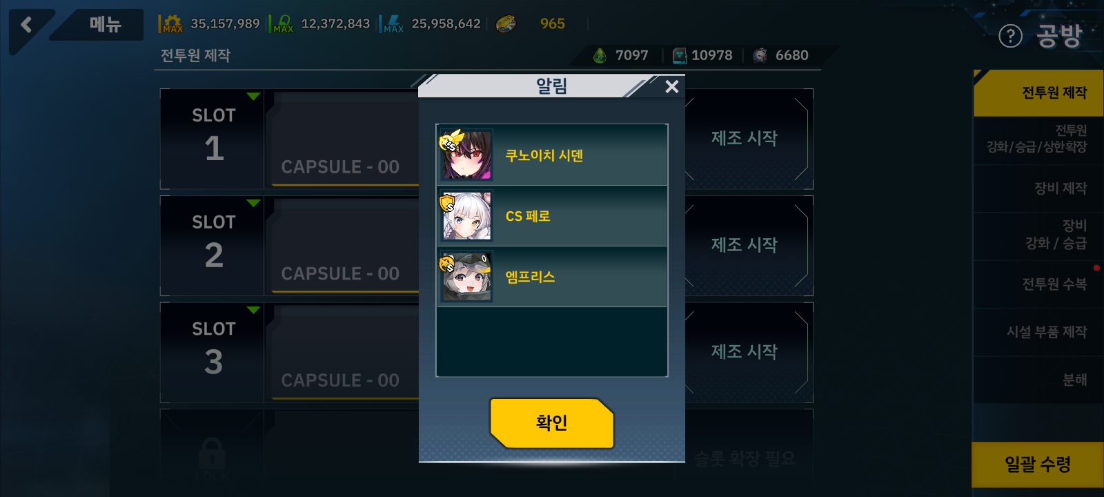 중간에 삑살나서 일반제조 6회가 되었고