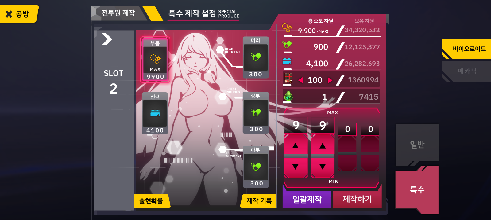 제작기록에 많은 4100/900/900으로 100여번 돌렸다가 아무리 생각해도 이 식은 기동 보호기 뽑기엔 안좋다 싶어서