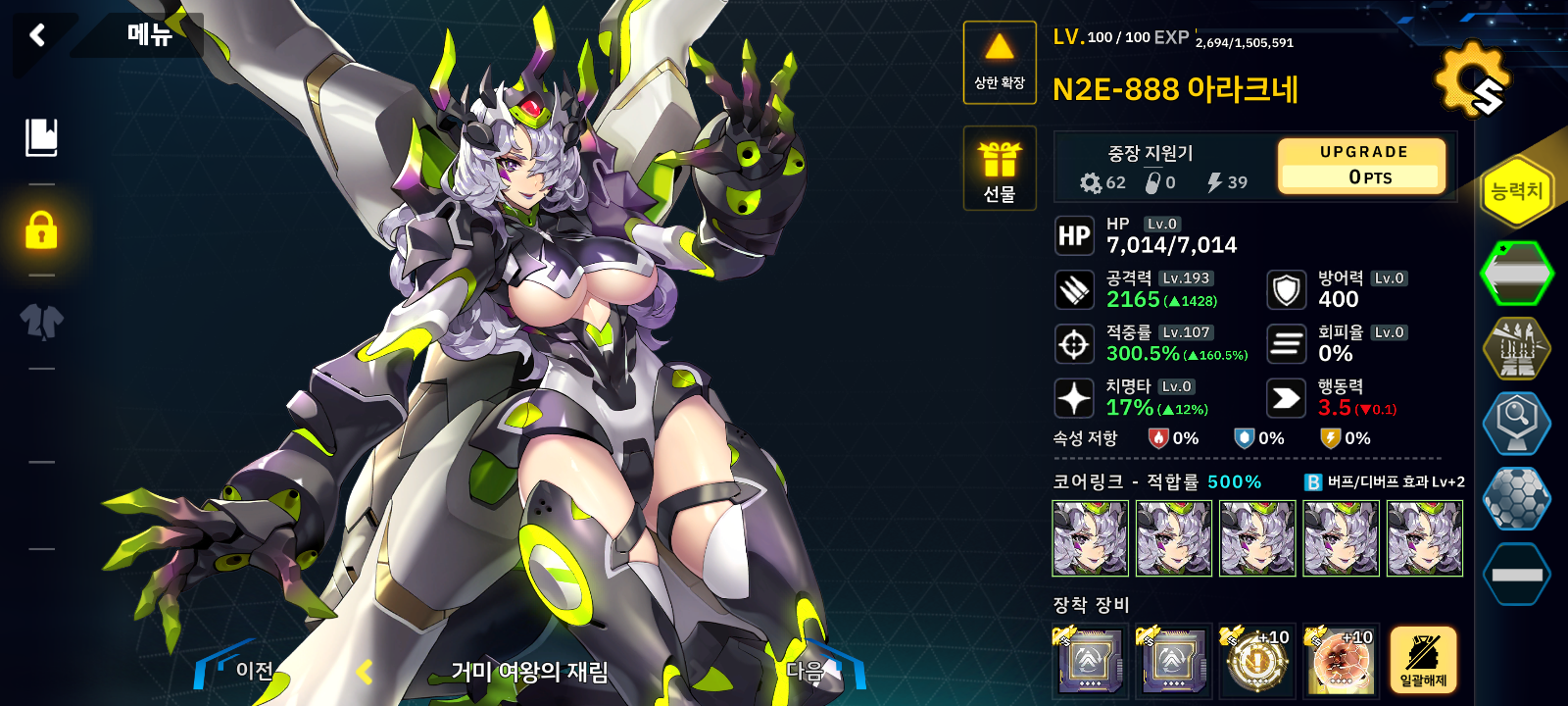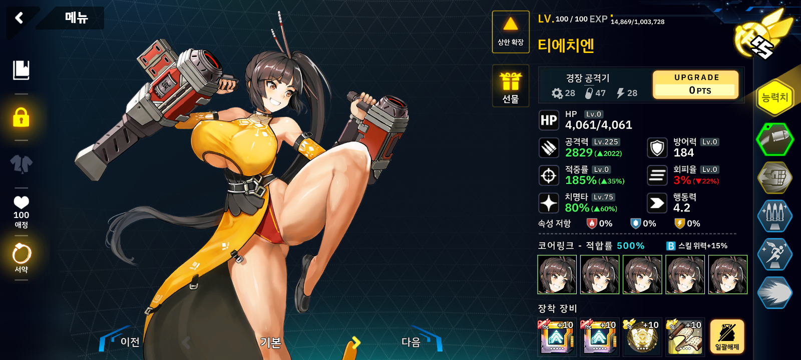 그래서 반격 해제를 가진 티에치엔과 타치를 넣었고 골타리온은 무적의 탱커이자 딜러며 나머지는 계속 대기하면 됩니다.