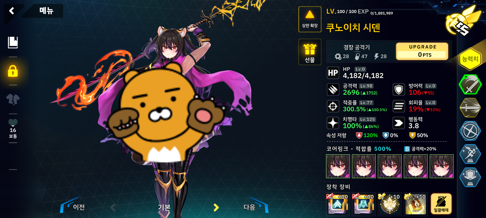 속성 딜러는 쿠노이치가 최강인지라 쿠노이치에 화염 공격 3인에 아라크네로 표식을 박아줍니다.