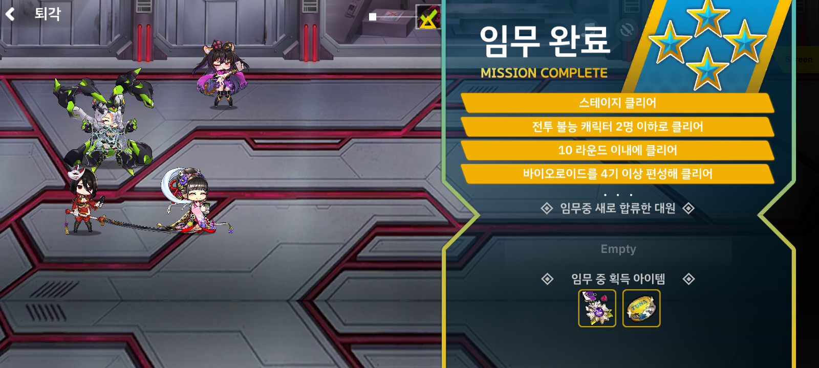 처음에는 엄청 막막해 보였는데 속성을 한개 잡아서 극딜로 들어가면 쉽게 클리어 할 수 있습니다.