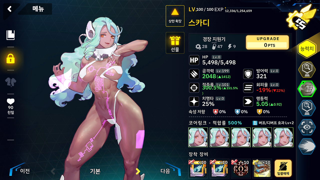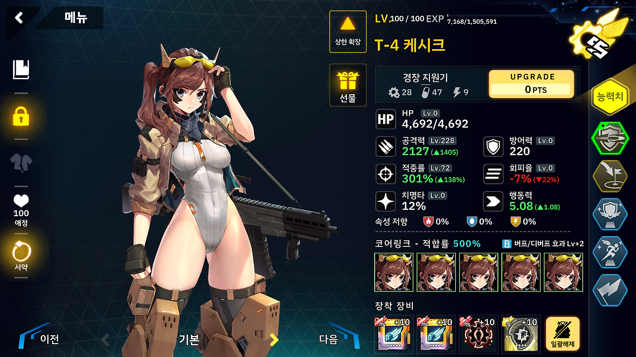 이 덱들의 장비들은 대충 제가 가지고 있는거 중에 있는걸로 끼워넣었지만 스카디 만큼은 신경써서 이속 세팅해야 됩니다.