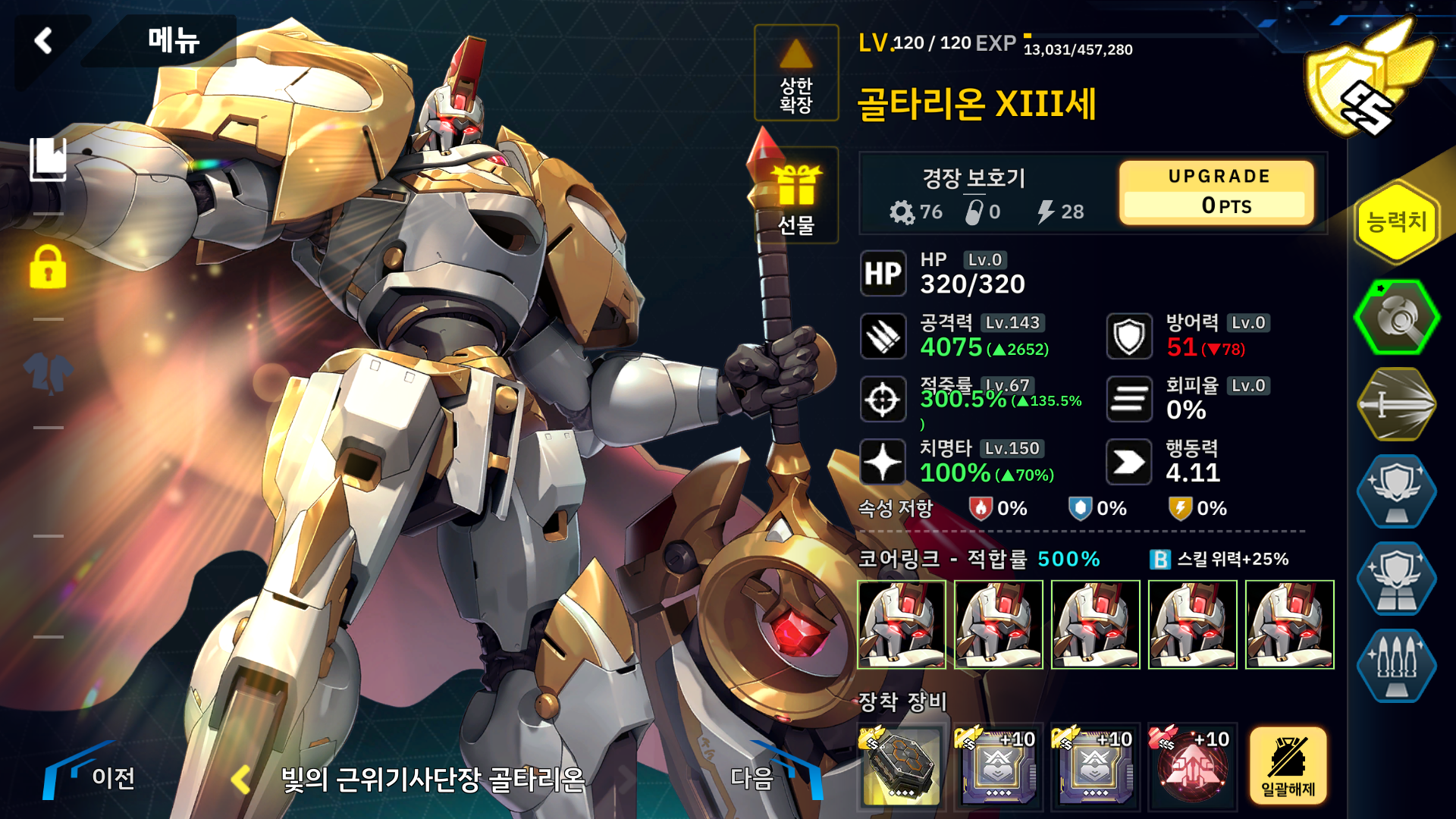 보스가 밀치기 공격을 하기 때문에 골타리온은 반드시 밀치기 대비로 복합장갑이 필수며 골타리온용으로 노강화 하나 만들어 놓으면 상당히 자주 쓰게 될겁니다.