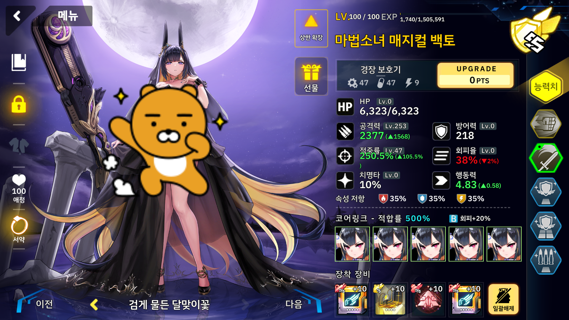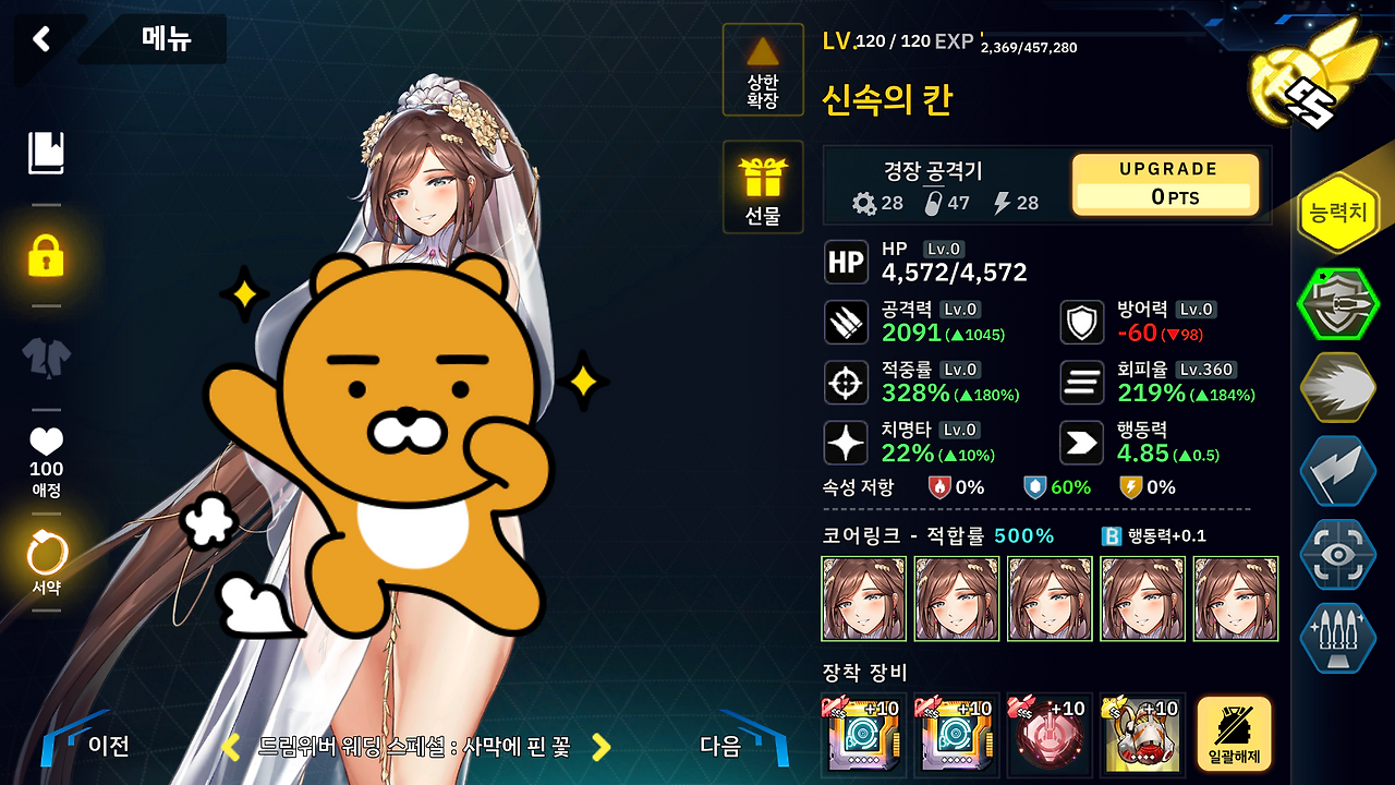 아무튼 덱을 교체 할 때 1회 적의 공격을 몸으로 다 맞아야 되는데 데미지가 전멸기 수준이라서 1회는 무적 방어가 필요합니다.