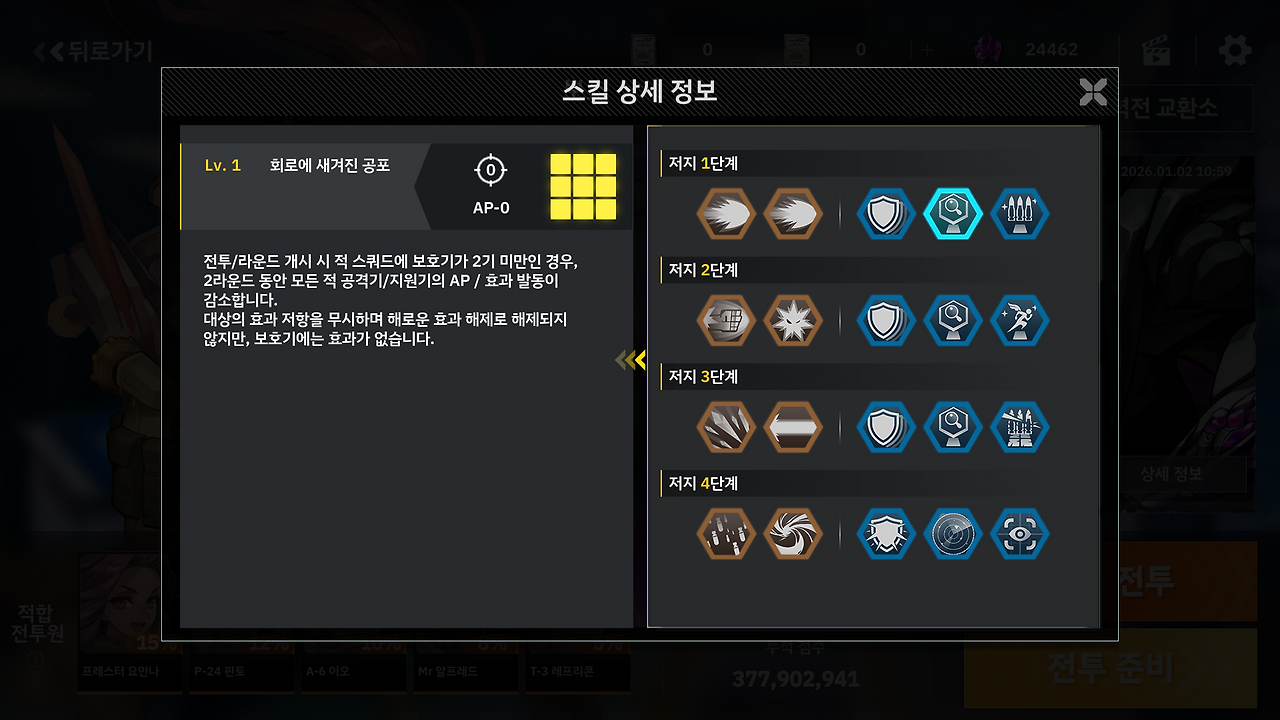 1단계는 보호기 2기 미만시 공격기 및 지원기를 고장냅니다.