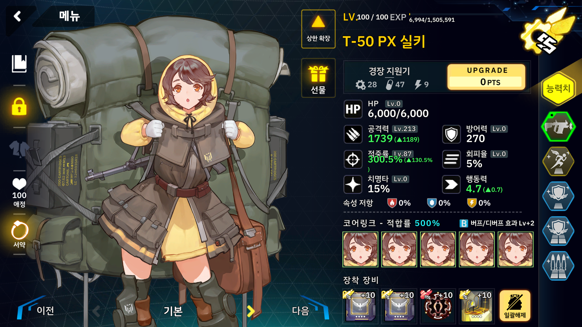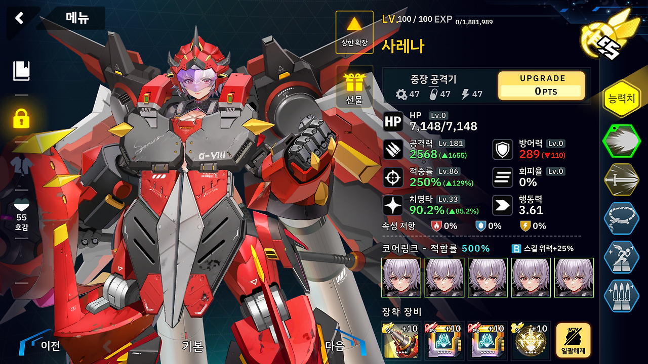 해당 핵심 요원을 제외한 나머지 캐릭터들은 더 좋은 전투원이 있다면 바꿔 끼시면 되겠습니다.