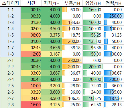 이벤트 시작전 미리 자원탐색이 공지에 올라왔길래 그걸 기준으로 자원효율표를 만들어 봤습니다.
