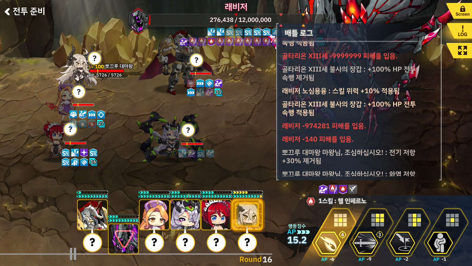 래비저가 총력전 시즌5의 보스가 되면서 저는 골타리온을 이용한 공략을 올렸습니다. 지금도 여전히 유효하지만(잘못된 내용이 있어도 -_-;;;) 해당 공략을 올릴때 마음 한켠에 버그성이 있는데 괜찮을려나 라는 생각을 지울수가 없었습니다. 왜냐하면 래비저의 이 스킬 때문입니다. 아주 간단하게 모든 전투 속행 효과, 즉 부활 스킬을 지워버리기 때문에 해당 스킬이 들어갈때 골타리온이 죽어야 됩니다. 하지만 골타리온은 이를 비웃으며 살아나기 때문에 골타리온 오토덱이 가능합니다. 솔직히 당시 저는 크게 오해를 한 부분이 있는데 로봇3인방으로 부활 스킬이 작동하면 강화 효과로 걸리고 뿌끄루로 가면 일반 효과로 가서 래비저가 골타리온 버프를 못 지우겠네 라는 1차원적인 생각으로 처음 이 방법을 시도 했고 먹혔습니다. ..