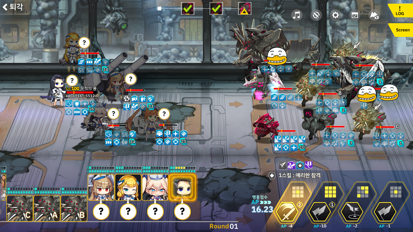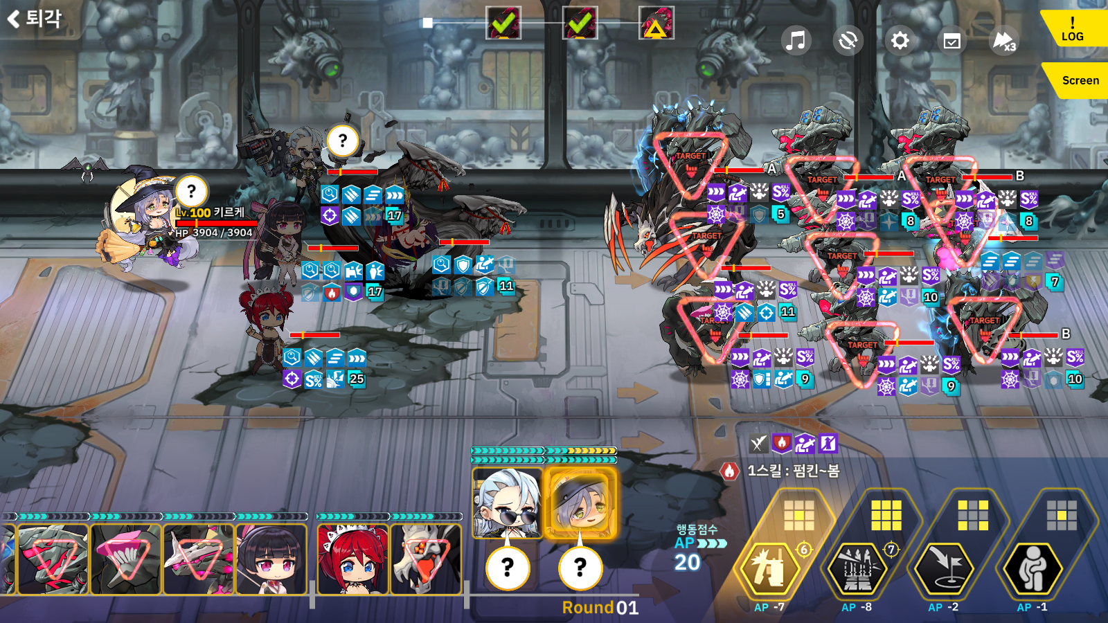 이번 스테이지는 게임사가 유저를 대상으로 낚시대를 드리우고 있습니다. 하지만 낚시인걸 알아도 그 먹이가 매우 맛있기 때문에 덮썩 물어주고 그 낚시대를 부러뜨려야 됩니다. 5인의 적합 중 3인이 호드이고 그냥 무시하기엔 매우 강력한 적합 보너스 입니다. 그래서 5인 호드덱을 꾸미고 가면 높은 적중과 칸을 저격하는 안테나 철충이 맞이 합니다. 그리고 두번째 낚시는 매 웨이브 스펙터가 배치 되어있어 스펙터 부터 때리길 요구하지만 그랬다가는 망합니다. 무조건 칸의 생존을 위협하는 적중과 회피 관련 철충부터 때려 무적 버프를 까며 먼저 잡아야 됩니다. 그리고 칸은 회피 칩 하나를 빼고 상태저항 칩을 무조건 1개는 착용해 회피 감소 디버프를 저항해야 됩니다. 빨붐이나 반격을 거는 악수맨은 이미 이전처럼 칸으로 공격..