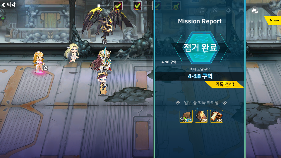 변화의 성소 4-16 스카이 나이츠 이번층은 쉽게 클리어가 가능한 층 입니다만 마지막 라운드에 먼가 꼬이니까 아래의 클리어짤 처럼 2명만 남았네요-_-;;; 빨붐 때문이였는데 솔직히 완전 날먹하다가 이상하게 된거지 사실 여기는 쉬운 층입니다. 일단 최고의 회피탱인 슬레이프니르가 주력인 층이다 보니 다 회피해서 맞을 일이 없고 매우 강력한 딜러인 하르페이아와 그리폰의 딜이 강력해서 쉽게 클리어 됩니다. 문제는 빨붐인데 빨붐의 회피는 머큐리의 1스로 회피를 지우고 때리면 됩니다. 머큐리의 1스는 적에게 안맞아도 회피 버프를 지우니 빨붐의 카운터로 매우 좋지요. 아무튼 매우 쉽게 쭉쭉 밀다가 마지막에 빨붐만 남겨놓고 이놈이 폭주해버려서 3명이다 전투이탈 되었는데 그냥 빨붐만 신경 빨리 쓰시면 쉽게쉽게 넘어가실겁니다. 라오 써본 덱들 2022.11.22
