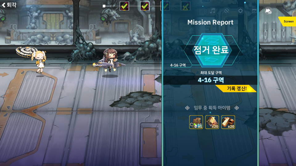 최고의 주유 지원기인 실키와 쿠팡만 적합인 매우 독특한 스테이지 입니다. 한마디로 기름 꽉꽉 채워서 패서 잡아라 인데 아무래도 기본적으로 3번의 행동을 할 수 있는 천아가 가장 먼저 생각이 났습니다. 더군다나 적중에 소소하게 반격을 하는 적도 있는지라 더더욱 반격 해제를 가진 천아가 활약한 스테이지라 생각되었고 매우 쉽고 편하게 클리어가 가능했습니다. 일단 철충 중 가장 강력한 딜러인 디스트로이어가 있는 스테이지 라서 회피에 표식을 셀프로 박는 칸을 탱커로 가져갔고 방어 관통을 챙기기 위한 마이티R은 큰 활약은 없었지만 위치에 관계 없이 방어 관통을 뿌릴 수 있기 때문에 천아의 패시브 중 근처에 아군 유닛이 없어야 되는 조건에 매우 적합했습니다. 아무튼 천아에 주유를 해주고 각 라운드에 맞게 1, 2스킬..