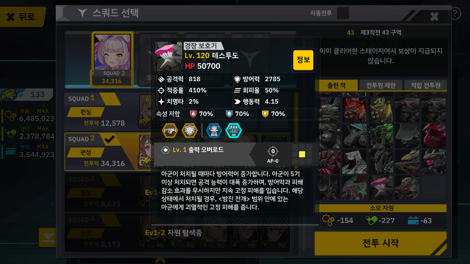 이 곳은 오르카 키친이라고 소완을 중심으로 한 경장 무한 연타층인데 솔직히 소완 멤버로 들고 갔다가 털려버렸네요 하하하;;; 그래서 또 다시 골타 꺼냈습니다. 아무튼 여기도 준비만 조금 하면 골타에 위협적인 적은 없기에 완전 날로 먹을 수 있었습니다. 반격 골타에 1스테이지가 무조건 화염 공격으로 잡아야 되는지라 개인적으로 좋아하는 쉐이드 들고 갔습니다. 그리고 2스테이지에서 확성기가 무려 4기가 존재하기 때문에 골타가 무조건 밀리는 상황을 막기 위해 아라크네를 방어 대책을 한 후 골타가 안밀리게 뒤에 배치했네요. 아무튼 요정도만 신경 써주면 완전 날먹 가능합니다. 매번 골타만 써서 게임력이 점점 떨어지는 기분이지만 골타가 너무나 좋습니다 ㅎㅎ