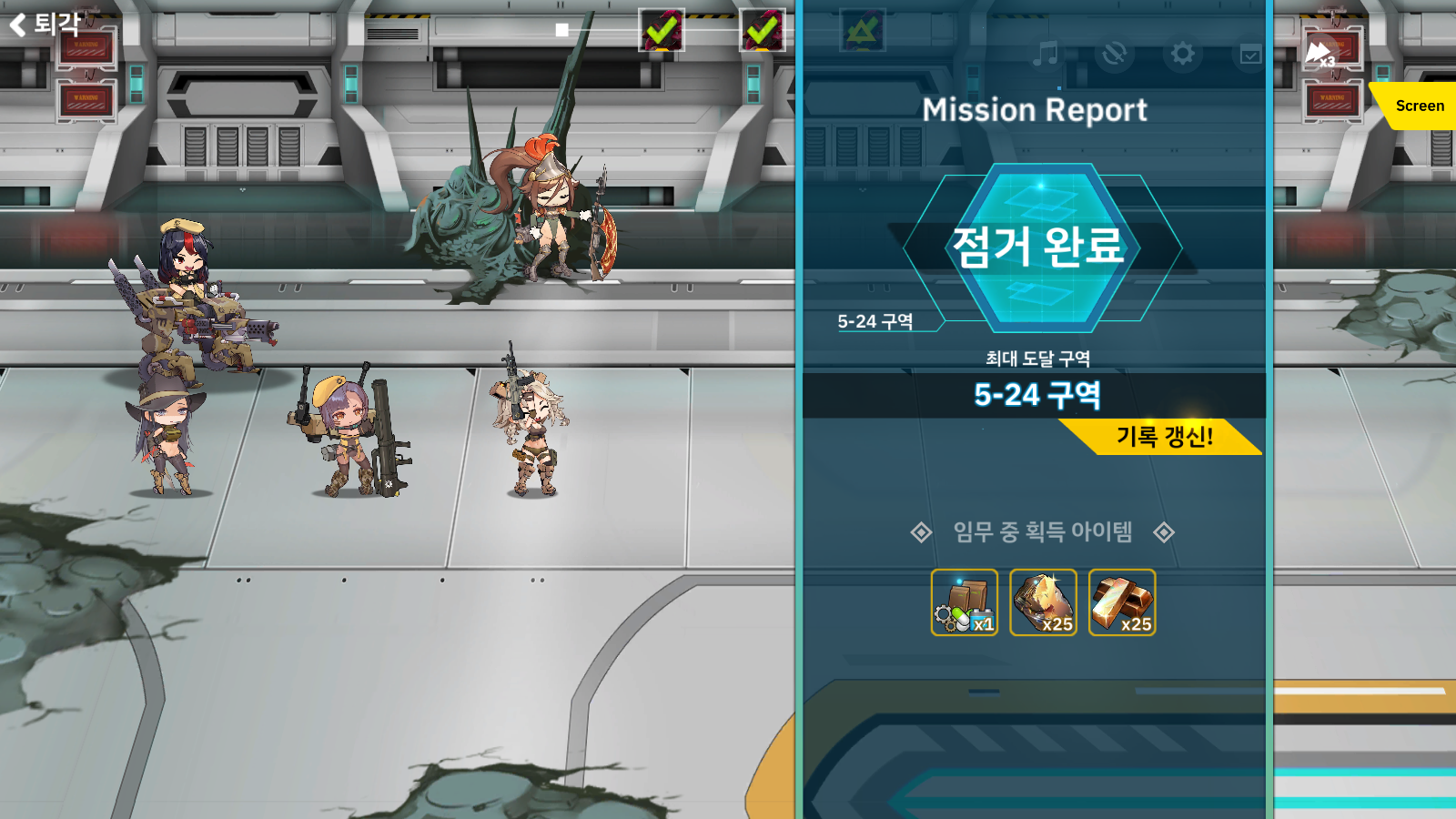 휴... 드디어 5지역도 전반기 마지막 스테이지 입니다. 공략없이 하다보니 시간이 오지게 걸렸네요 하하하 =_=;;; 덕분에 오지게 가슴 쫄깃쫄깃하게 하긴 했지만.. 아무튼 5지역 현재까지 업데이트된 마지막 스테이지 입니다. 참고로 메인 탱커인 하치코가 전투 이탈될 가능성도 있기 때문에 난이도가 낮은 공략을 찾으시는 분들에게는 이번 저의 파티는 조금은 운과 노력이 필요하기 때문에 그렇게 추천하고 싶지는 않습니다. 이번 저의 파티는 하치코와 트리어쩌구가 메인입니다. 물론 딜링 면에서는 화려하지 않지만 MMO에서 레이드에서 탱커와 서폿 느낌입니다. 먼저 하치코는 행/열보호가 걸리는 조건이 공격 지원 대상이 되어야 됩니다. 시라유리의 공격지원을 받기 위해서는 정찰 상태가 되어야 되는데 이 부분은 방법이 없더군..