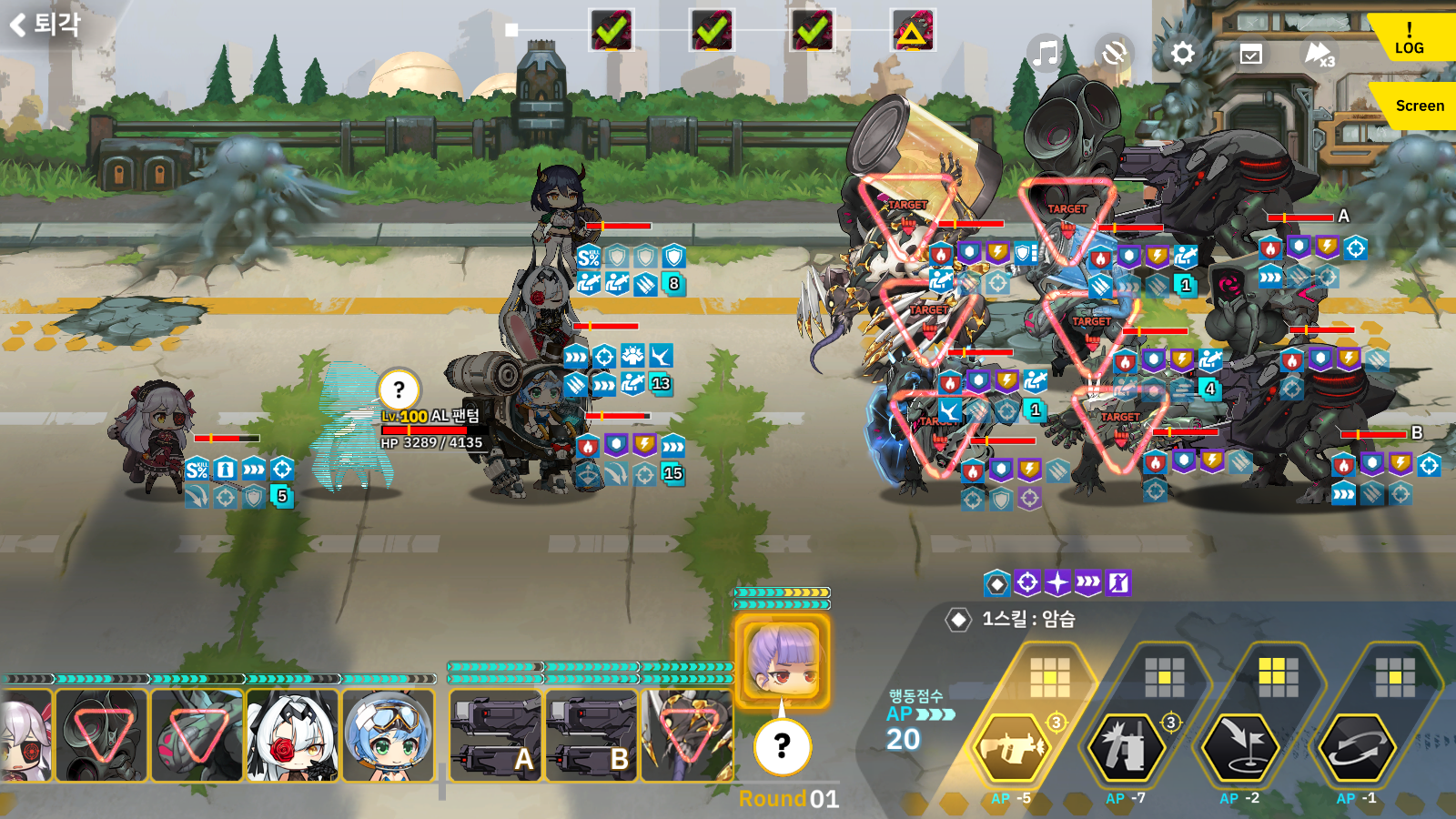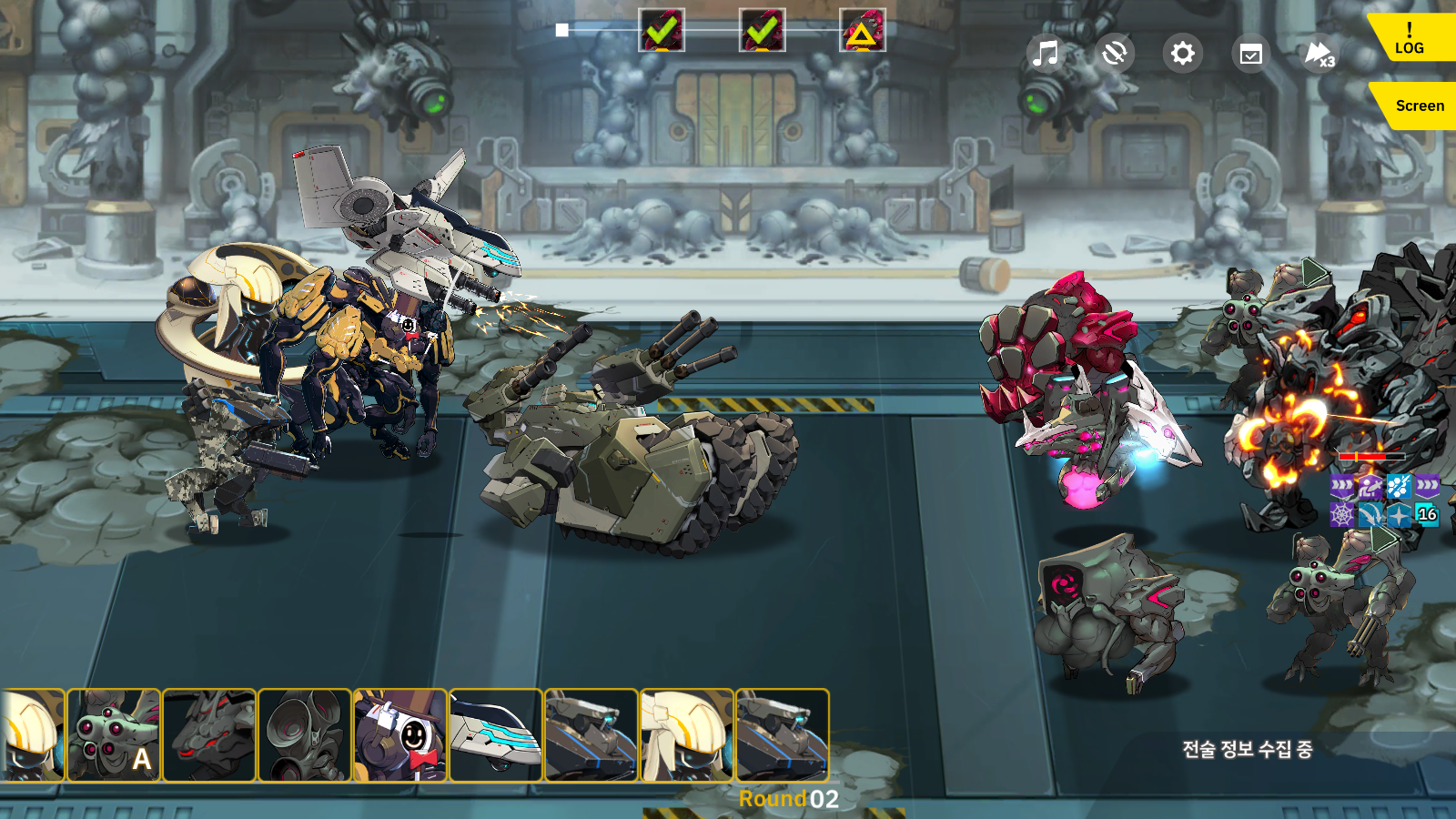 이번 스테이지는 바이오로이드가 금지더군요. 그래서 이전 제가 총력전 공략으로 올린 AGS덱을 그냥 들고 왔습니다. 다만 총력전은 적중을 안찍어도 되지만 변소는 기본 350은 되어야 되기 때문에 스탯 초기화 후 적중만 350찍고 나머지는 걍 대충 했습니다. 워낙 강력한 덱이다 보니 별생각없었거든요. 뭐 그 결과는 역시나 쉽게 밀었습니다. 오토를 해도 될거 같지만 그래도 수동으로 ㅇㅇ 해당 맵의 적들 배치 포인트가 가운데에 가장 중요한 적들을 배치하더군요. 그래서 선턴잡은거 대기 후 가운데 몹에 올인하고 오토 그렇게 3번 반복하면 매우 쉽게 클리어 합니다. 이렇게 날먹도 해야지 ㅎㅎ