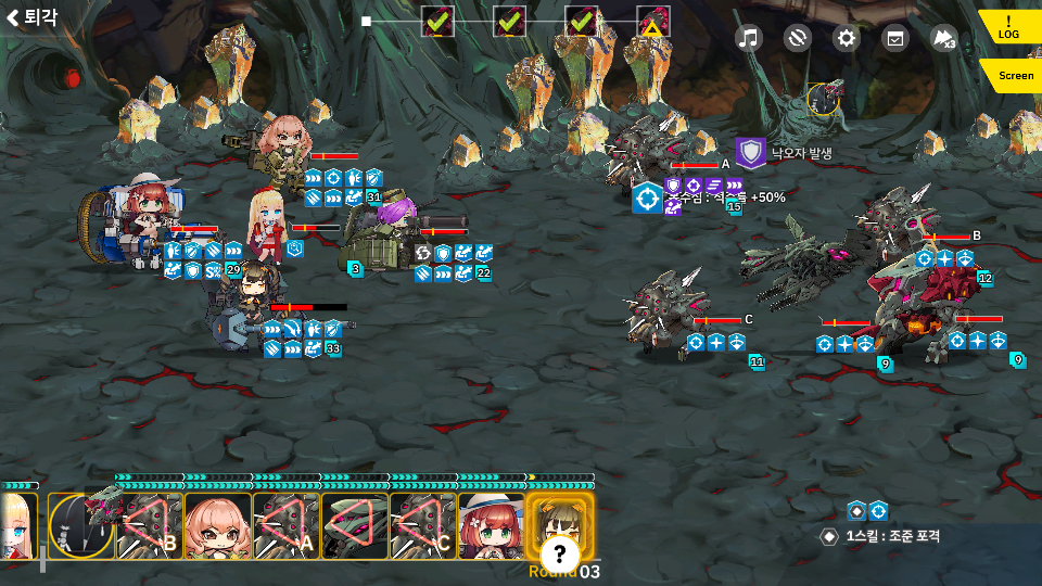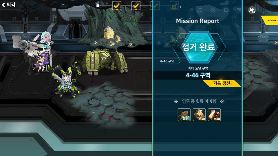 이번 층은 호라이즌에 버프가 붙는 층입니다. 원래 라면 세이렌이 보통 버퍼로 쓰이지만 보너스 멤버로 할려면 딜러로 써야 되는데 이미 풀링크 세이렌을 써버려서 스탯도 안찍은 노링크 세이렌을 테스트 삼아 넣어서 돌렸다가 우연과 우연이 겹치면서 클리어 되었습니다. =-=.. 아마도 세이렌 풀링에 스탯도 정상적으로 찍은거면 훨씬 편하게 클리어가 되지 않을까 싶습니다. 일단 이 상황에서도 무사히 4스테이지까지 갔고 4스테이지에서는 생전 처음으로 무용이 전투 이탈 하면서 반격 버프 뿌리는지 처음 알았습니다. 무용의 버프로 네리에 반격이 걸리고 부활하며 반격으로 빨붐이랑 나머지 철충을 20만씩 데미지 박으며 클리어 하였습니다. 거참 =ㅁ=... 딱 그 타이밍에 무용이 이탈되면서 버프를 안뿌렸으면 빨붐을 잡을 수 없었..