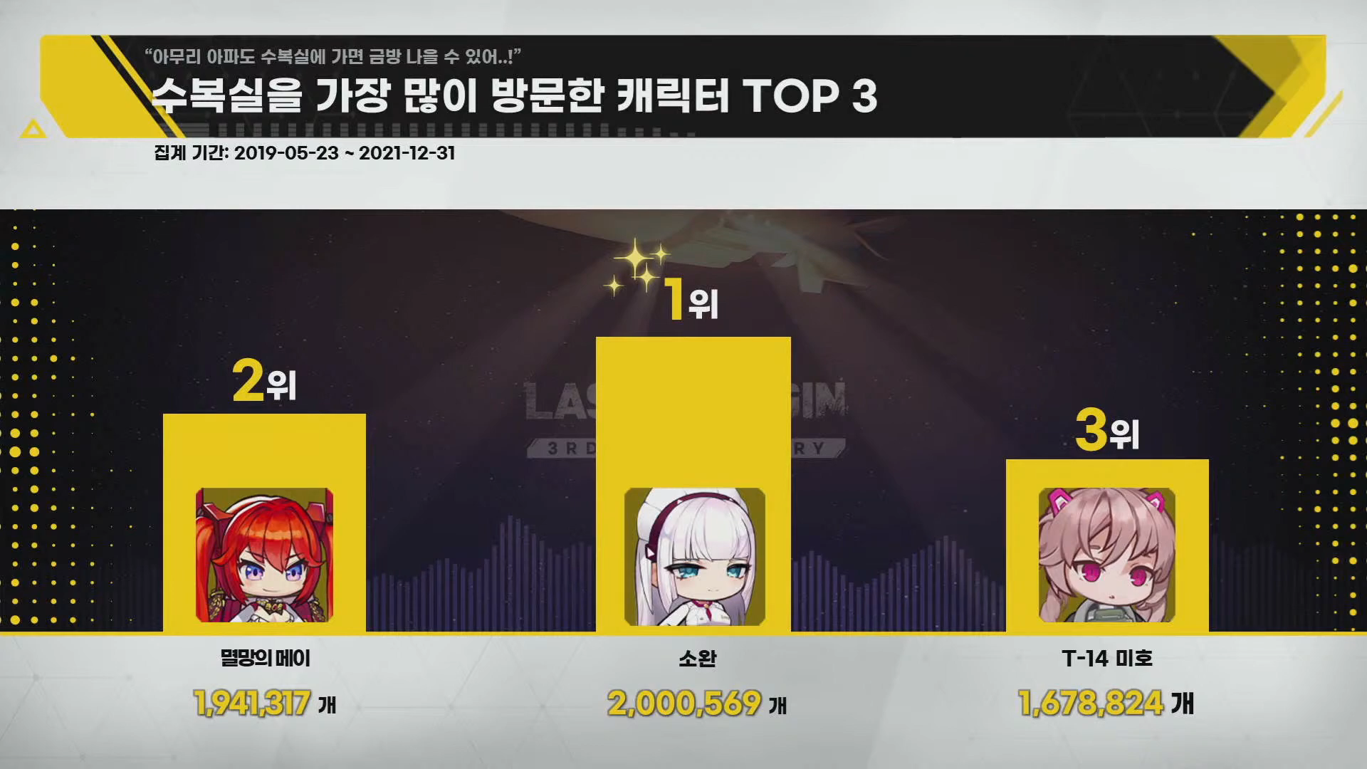 9. 사실 소완과 메이는 대표적인 중파 운용 유닛이다 보니 정말 전투중 제대로 공격입어서 수복실 들어간 수치라고는 생각되지 않습니다.