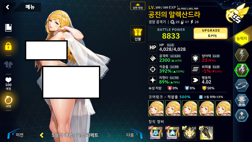 아무튼 그래서 아래와 같이 엘븐 + 여기서 버프를 받는 알렉과 마이티R를 추가 했는데