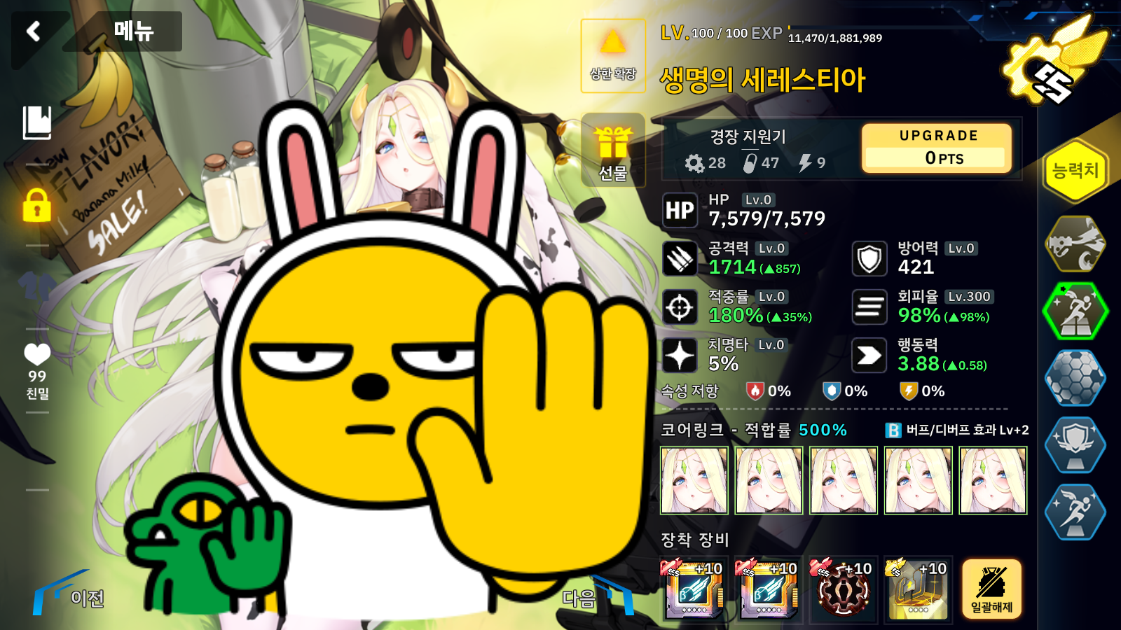 다만 중요한건 반격을 받을 수 있기 때문에 반격을 끄기 위해 엘븐 포레스트메이커로 침수 시키고 세레스티아 1스킬을 쓰면 디스펠이 되기 때문에 그걸로 반격을 해제 해주면 됩니다.