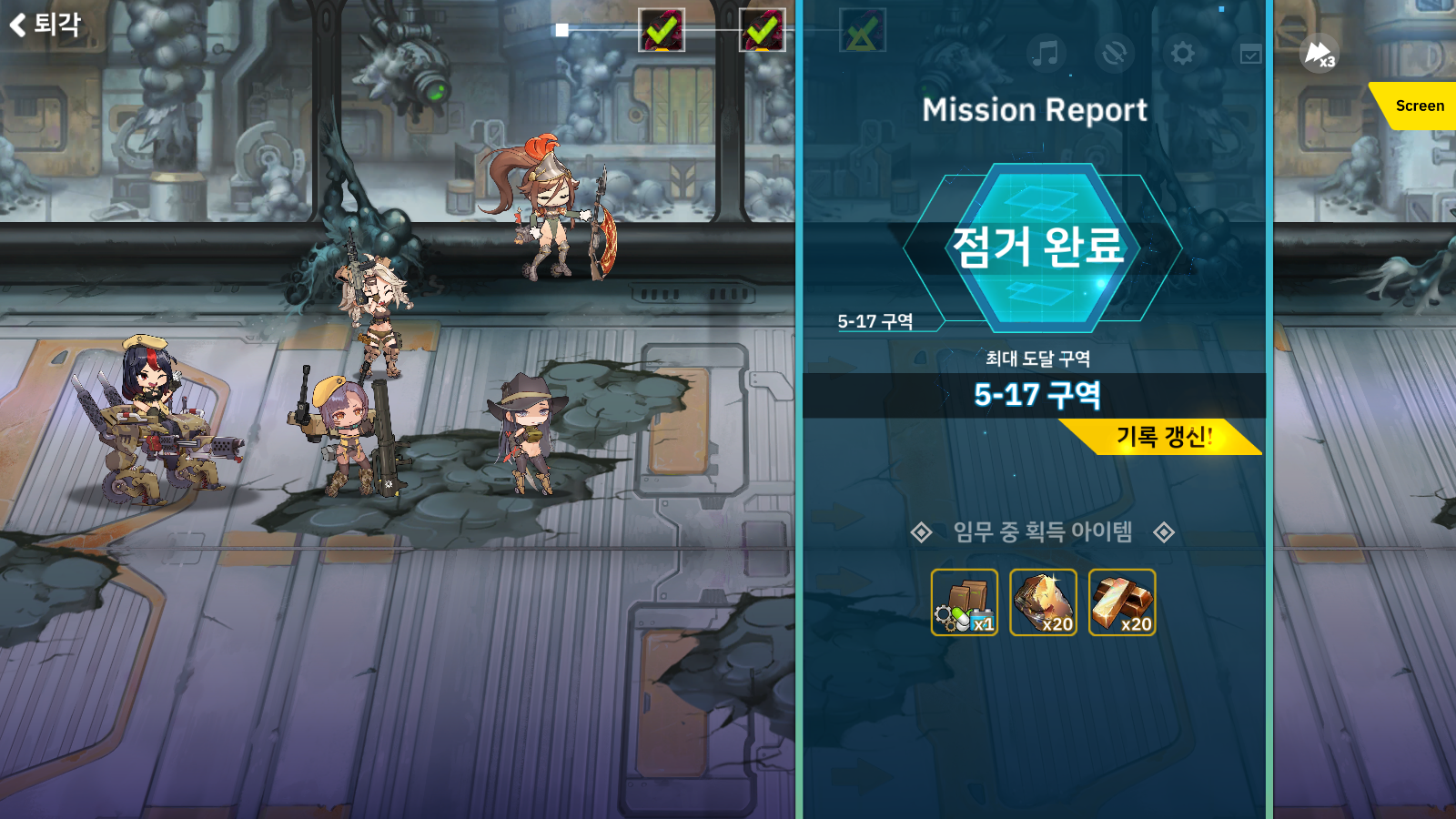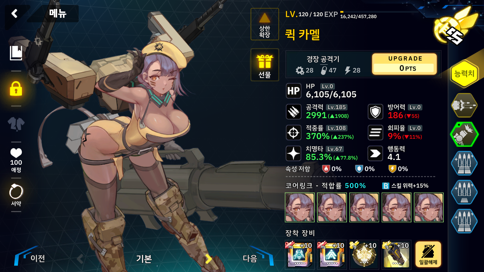 반격이 걸리는 적은 칸으로 공격하고 퀵 카멜이 지원 공격하고 다시 그 공격은 칸이 회피하니 칸으로 반격하는 애들만 저격해주면 간단하게 클리어 합니다.