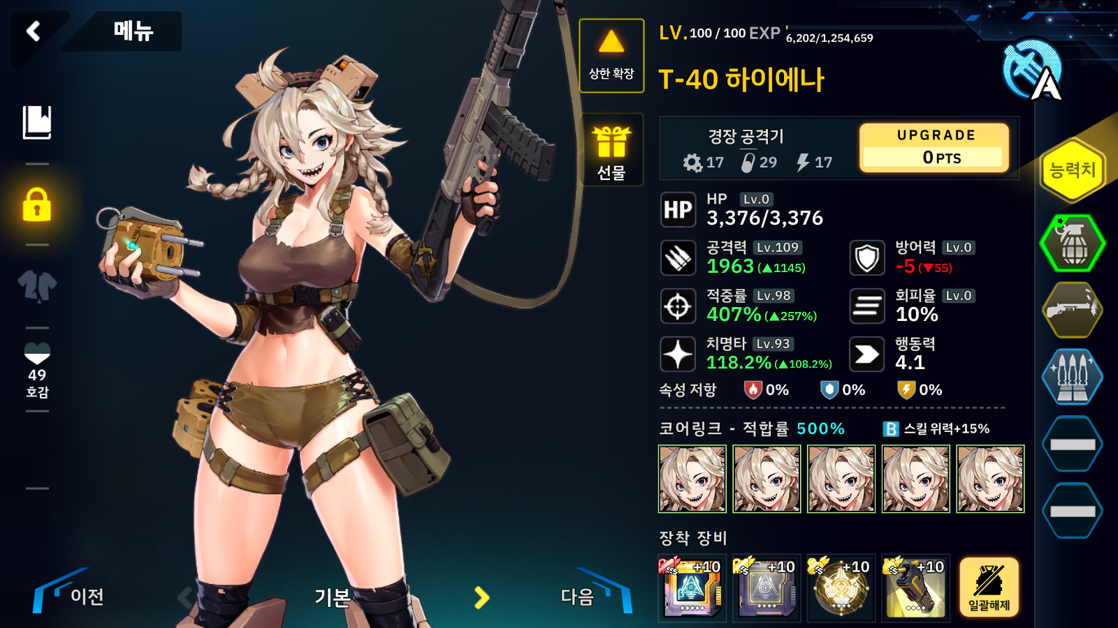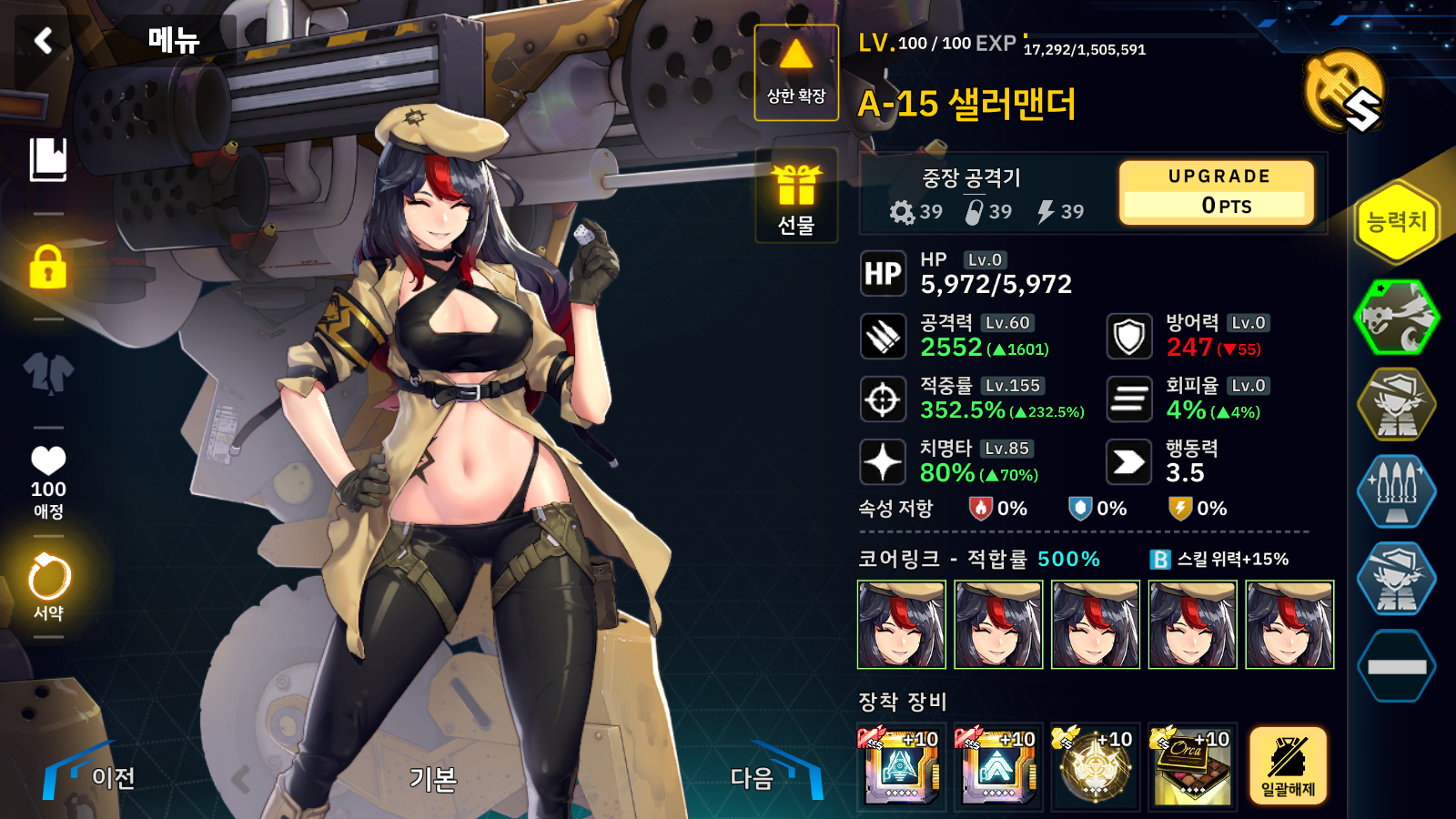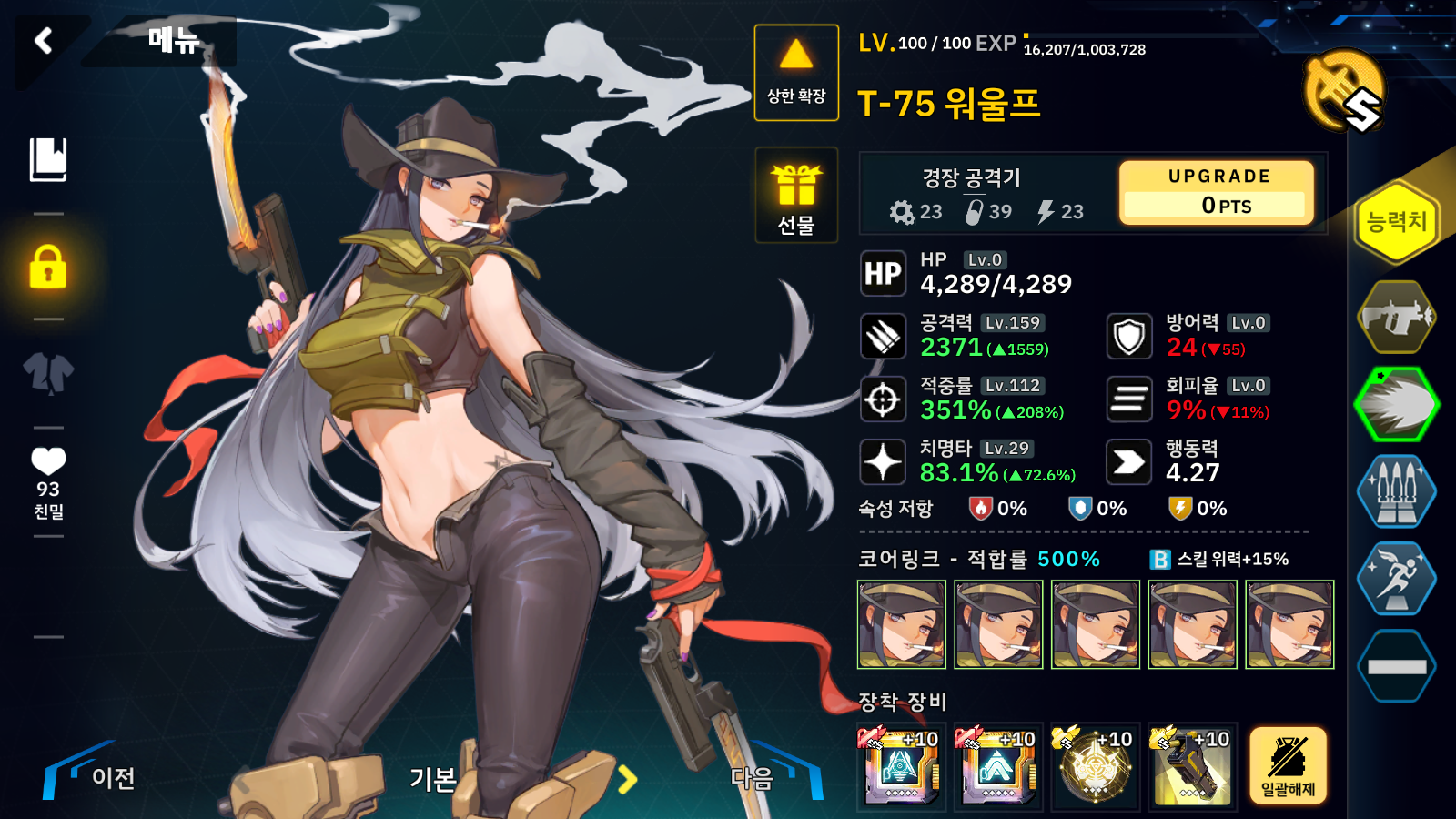 그리고 칸은 회피 칩 하나를 빼고 상태저항 칩을 무조건 1개는 착용해 회피 감소 디버프를 저항해야 됩니다.