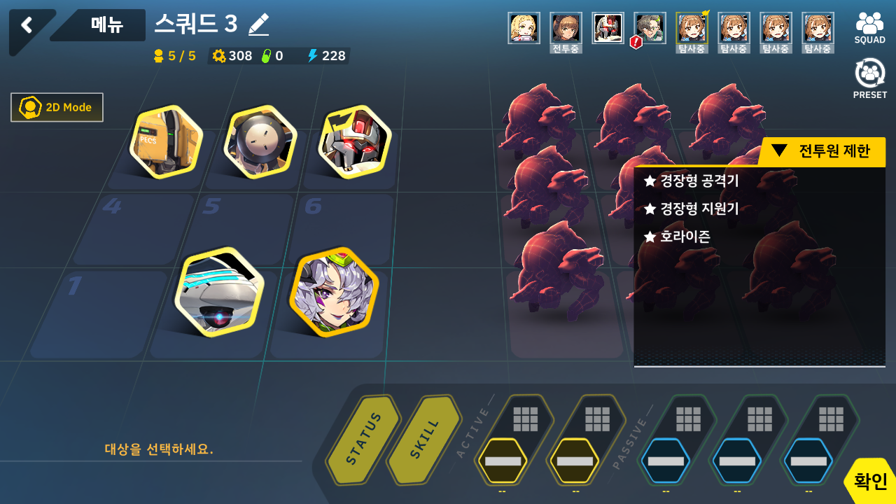 주의해야 되는 적은 딱 2종류로 마리오네트 포병의 2스킬이 100데미지의 도트 데미지를 날리기 때문에