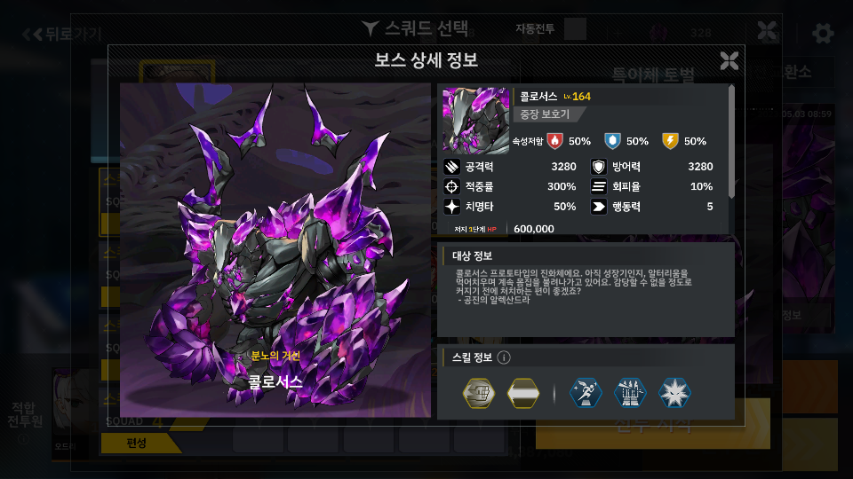클리어 스샷에 파티원 2명이 전투 이탈했는지라 혹시나 어려운 스테이지 인가 오해하실수 있는데 그냥 날로먹는 스테이지 입니다. 그냥 걔들은 쑈하다고 죽은거고 해당맵은 그냥 리리스 혼자 클리어 하는 맵입니다. 당초 처음 스테이지 보너스 유닛을 보고 미스세이프티가 활약하겠구나 했는데 개뿔 그런거 없습니다. 적이 표식이니 이런거 들고 있어서 어그로 다팁니다. 미스세이프티는 그냥 해당 맵의 보너스를 받기 위한 용이고 그냥 리리스가 딜과 탱 다하고 원맨쇼로 합니다. 같이 데려간 딜러들은 아무것도 못하더군요 -_- 하하하;;; 다필요없고 리리스에게 받는 피해 감소 장비만 둘둘 하시면 되겠습니다. 그러면 알아서 반격하고 때려잡습니다. 그리고 칙런쳐는 대중장형 데미지 감소 스킬을 사용하기 때문에 딜러들 데미지가 아예 안..
