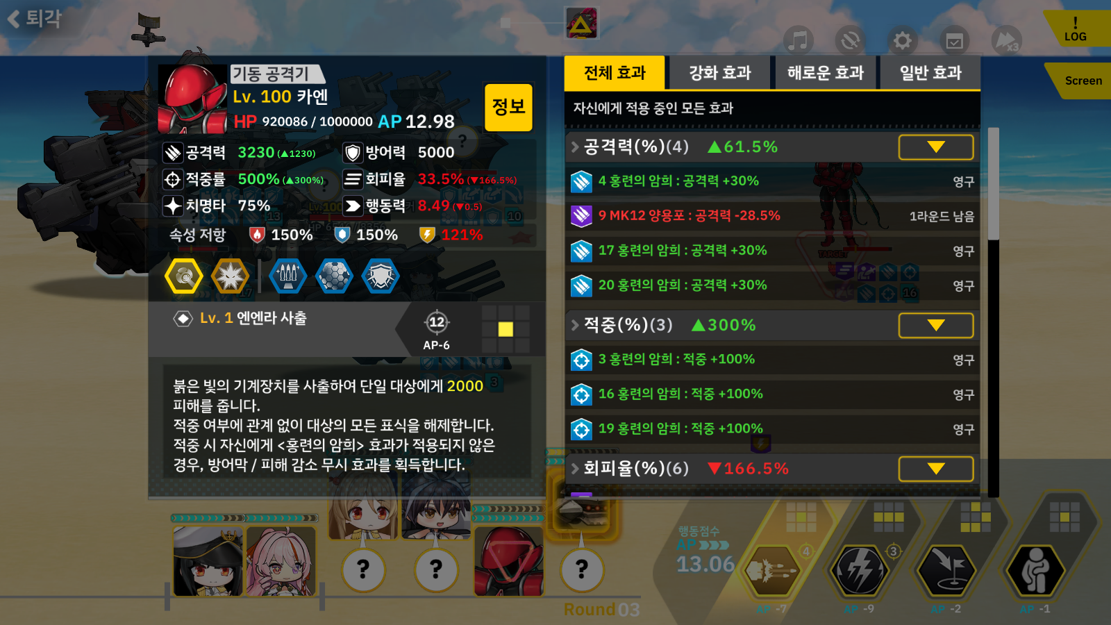 일단 보스 몹 중에 매우 오랜만에 피해감소를 무시 않는 보스네요. 피감 둘둘 해도 워낙 무시 하는 애들이 많다보니 아예 생각도 안했는데 이번 보스는 없었네요. 두번째는 극딜이네요. 절대로 짤짤이 데미지를 꾸준히 누적하는 방식이 아니라 AP를 모아서 극딜하는 메타도 필요하네요. 세번째는 2스킬 후 보호막 해제네요. 보호막이 있으면 부활하기 때문에 2스킬 후 보호막이 해제되고 그때 막타 쳐서 죽이는 메타네요. 마지막은 버그군요. 보호막이 사라지고 바로 죽음에 이르는 딜을 넣으면 다시 부활하는지라 안죽을 만한 데미지로 짤짤이 넣어서 정상적으로 부활 스킬이 사라지면 그때 죽여야 되네요. 버그 시러~~