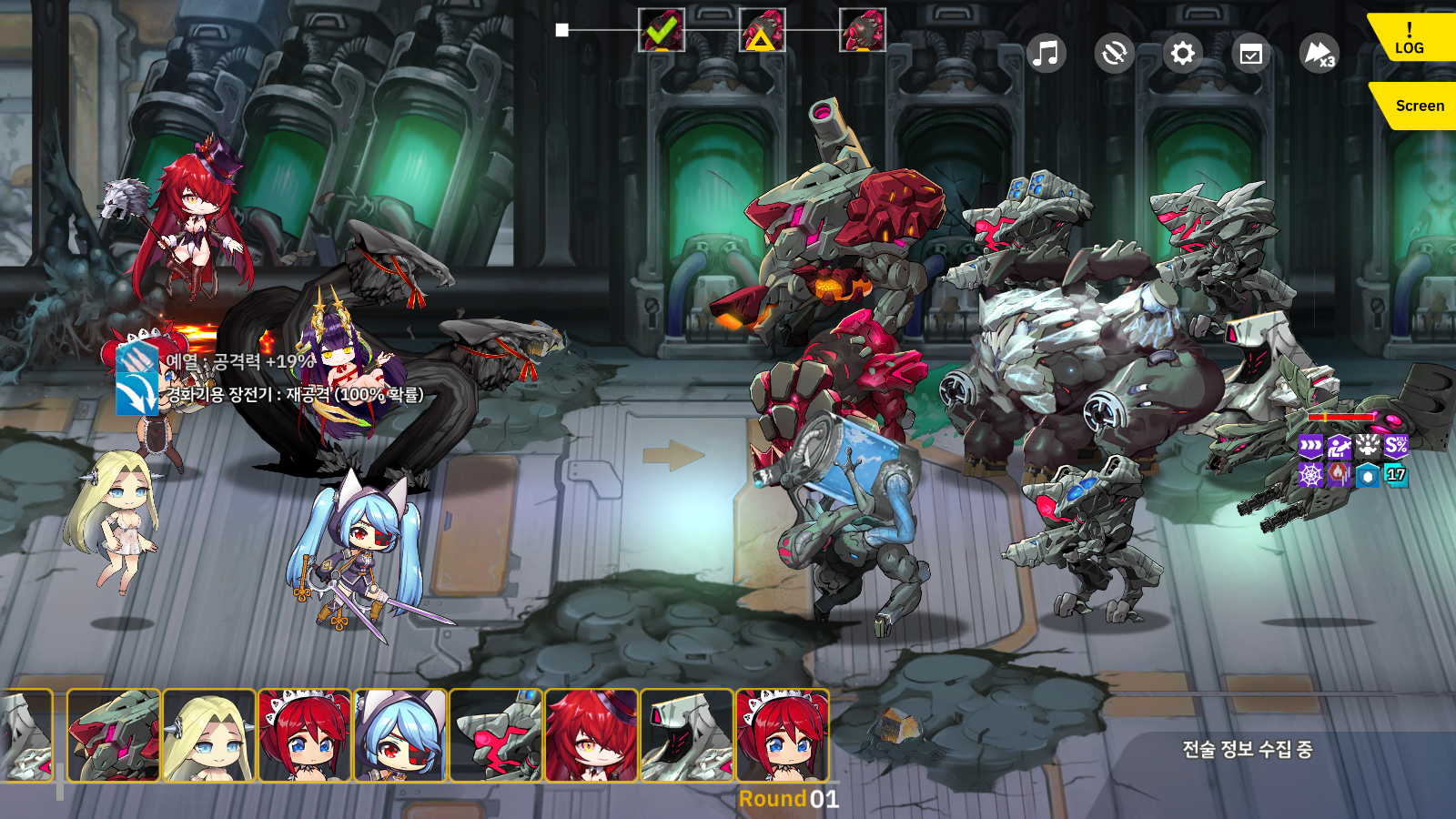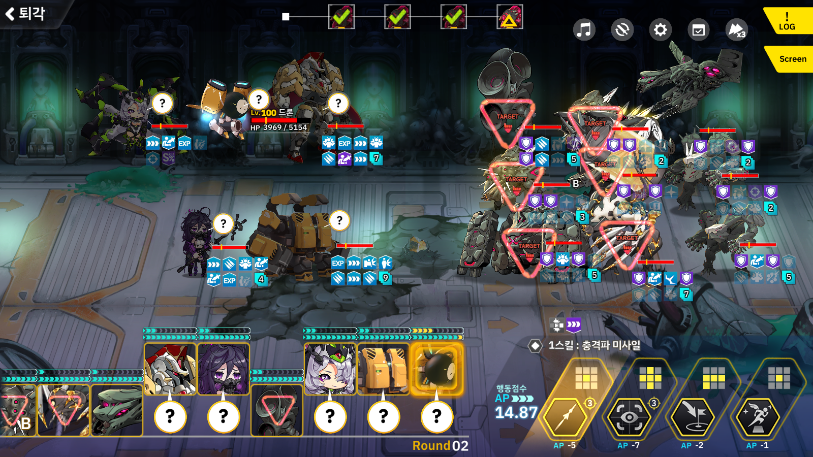 휴... 드디어 5지역도 전반기 마지막 스테이지 입니다. 공략없이 하다보니 시간이 오지게 걸렸네요 하하하 =_=;;; 덕분에 오지게 가슴 쫄깃쫄깃하게 하긴 했지만.. 아무튼 5지역 현재까지 업데이트된 마지막 스테이지 입니다. 참고로 메인 탱커인 하치코가 전투 이탈될 가능성도 있기 때문에 난이도가 낮은 공략을 찾으시는 분들에게는 이번 저의 파티는 조금은 운과 노력이 필요하기 때문에 그렇게 추천하고 싶지는 않습니다. 이번 저의 파티는 하치코와 트리어쩌구가 메인입니다. 물론 딜링 면에서는 화려하지 않지만 MMO에서 레이드에서 탱커와 서폿 느낌입니다. 먼저 하치코는 행/열보호가 걸리는 조건이 공격 지원 대상이 되어야 됩니다. 시라유리의 공격지원을 받기 위해서는 정찰 상태가 되어야 되는데 이 부분은 방법이 없더군..